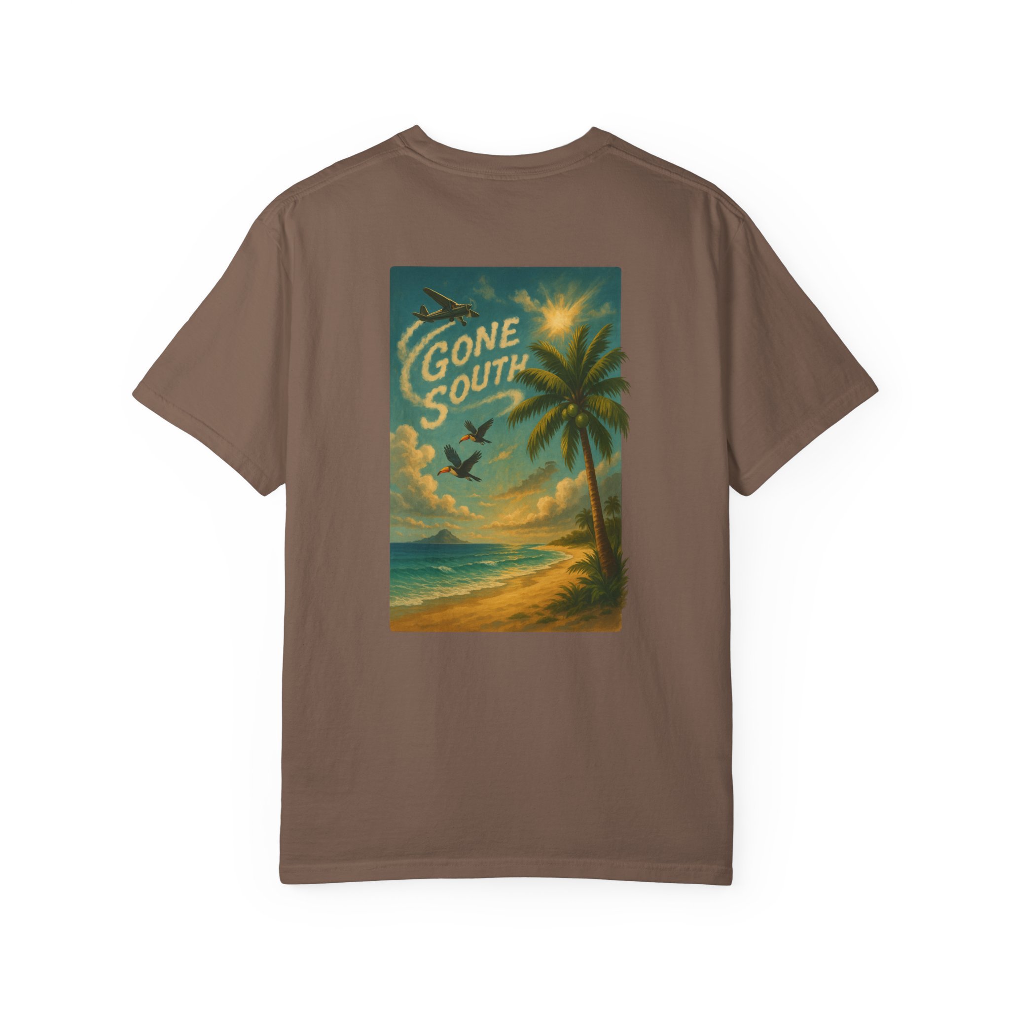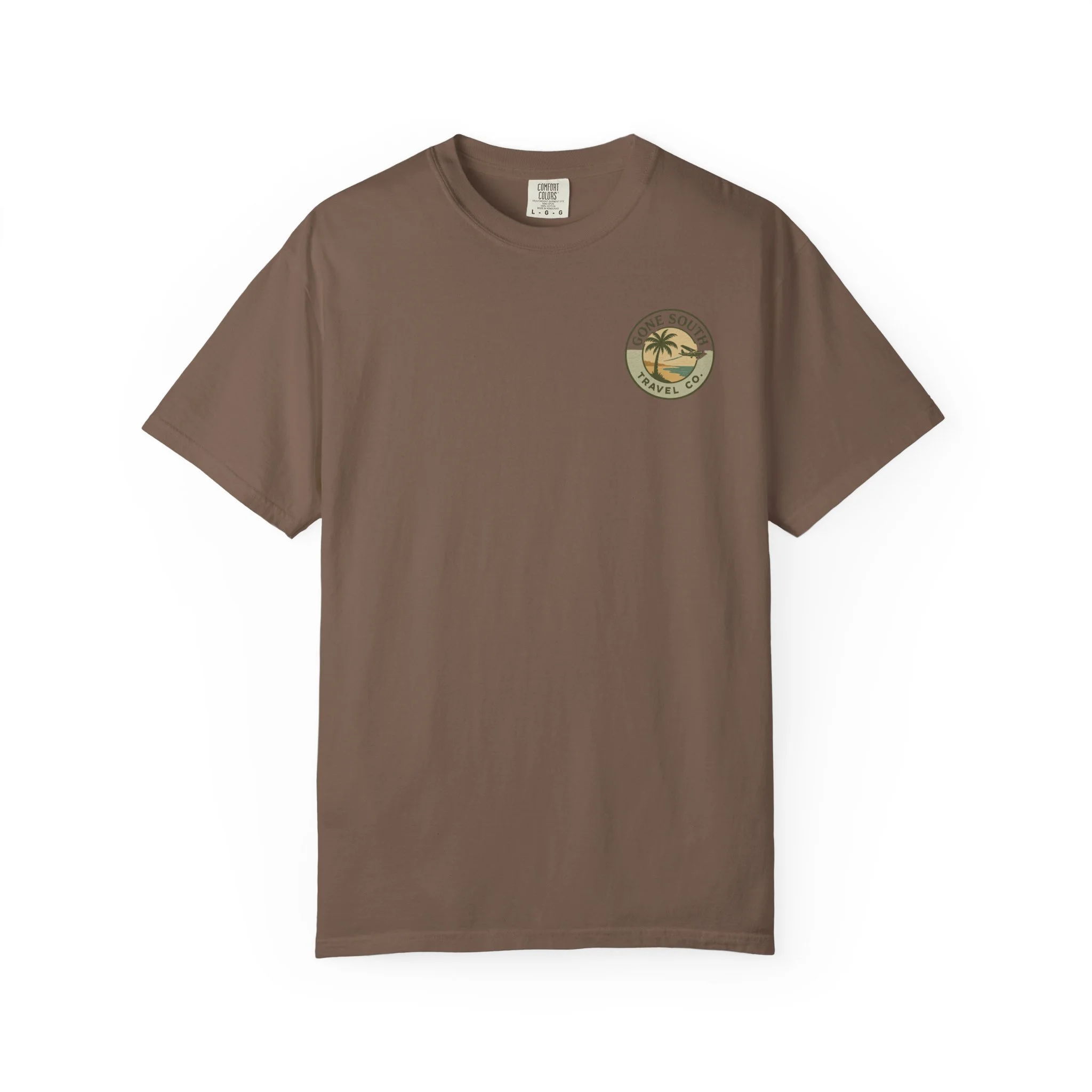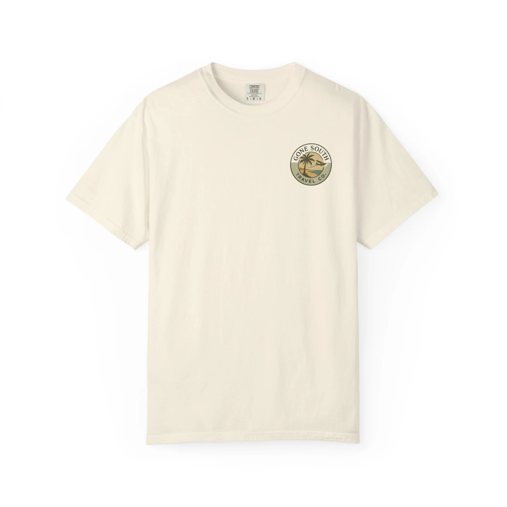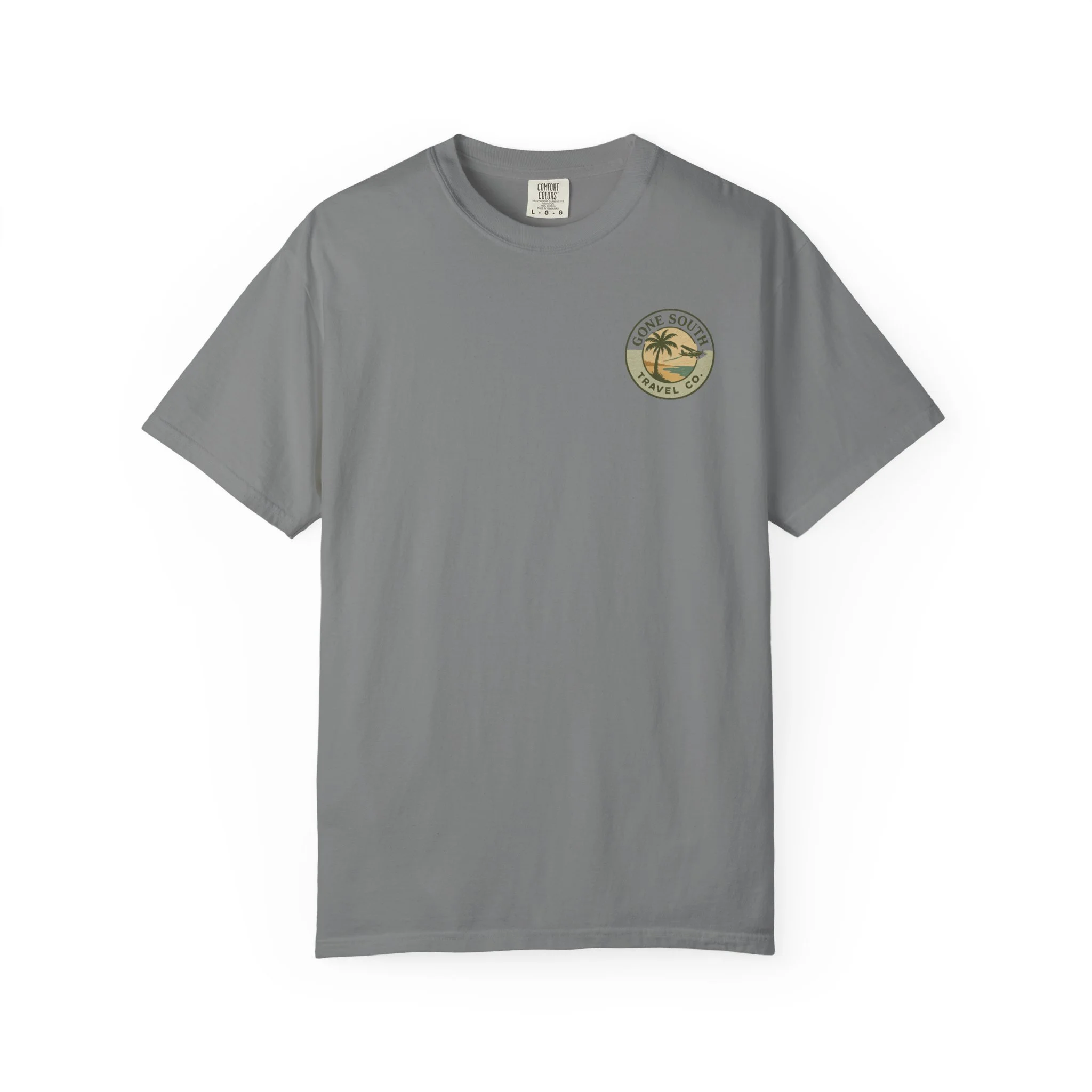 A comfortable and stylish T-shirt featuring a design for gone South travel co. Perfect for those who love to travel and explore new destinations. Ideal for casual wear and to show off your adventurous spirit. Great for travelers, wanderers, and vacation-goers. Relevant for vacations, travel seasons, holidays, and gift-giving occasions.