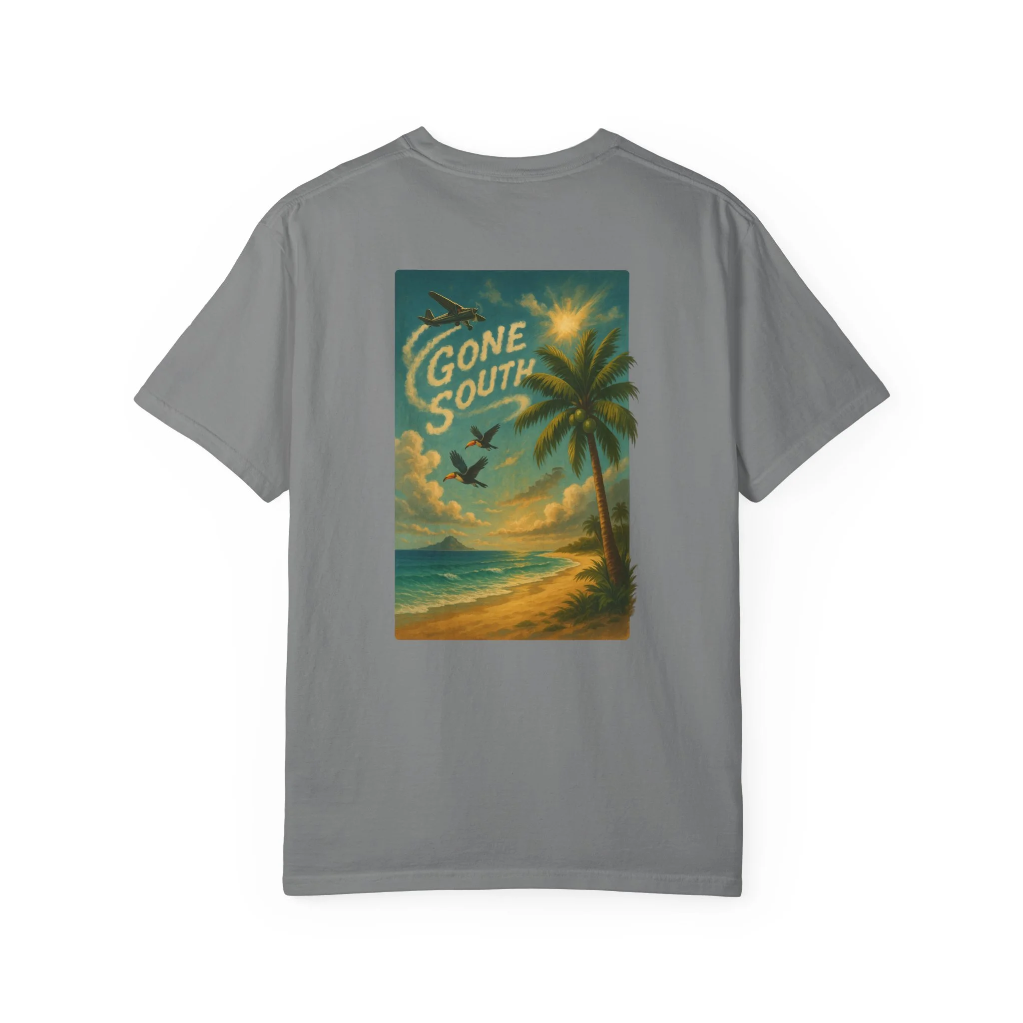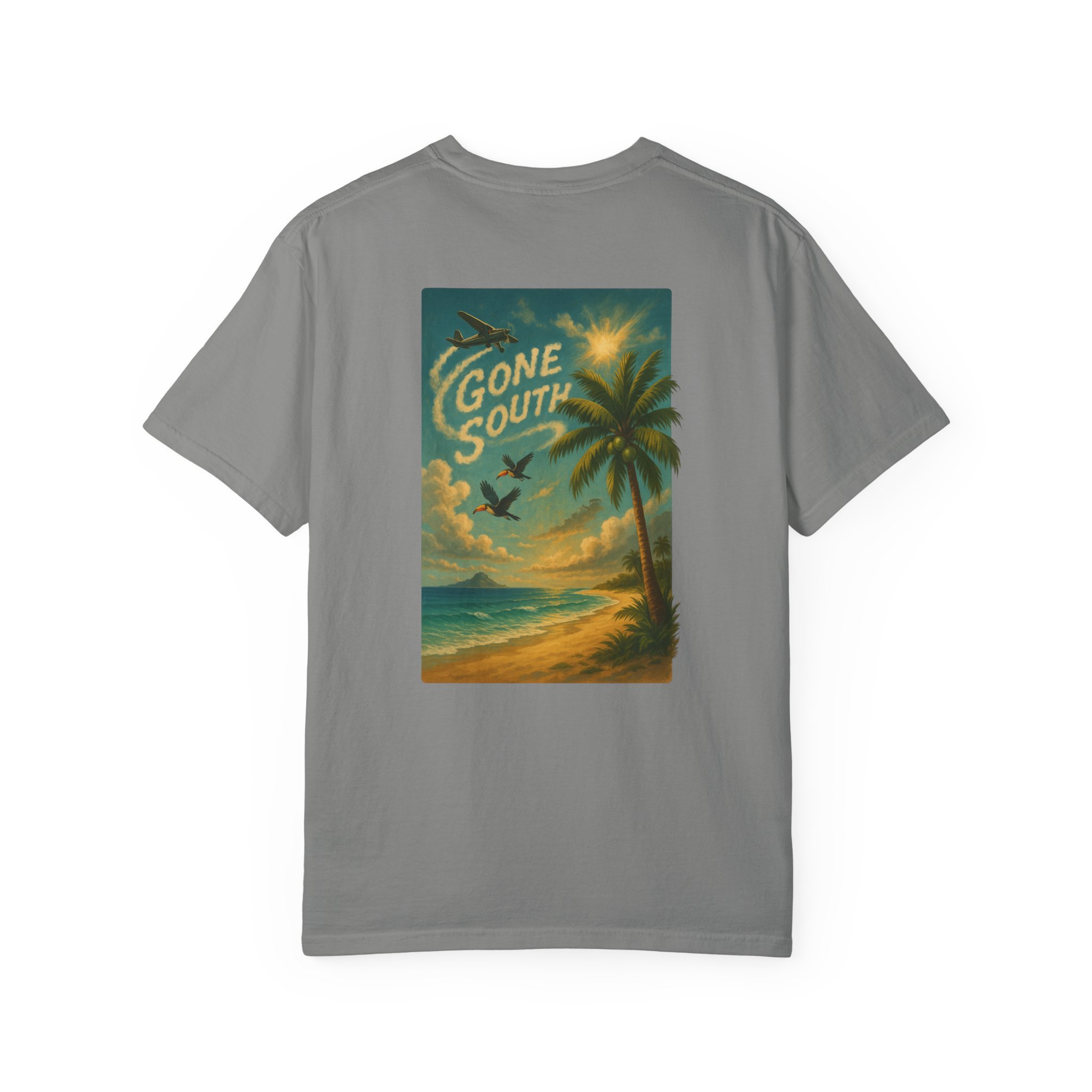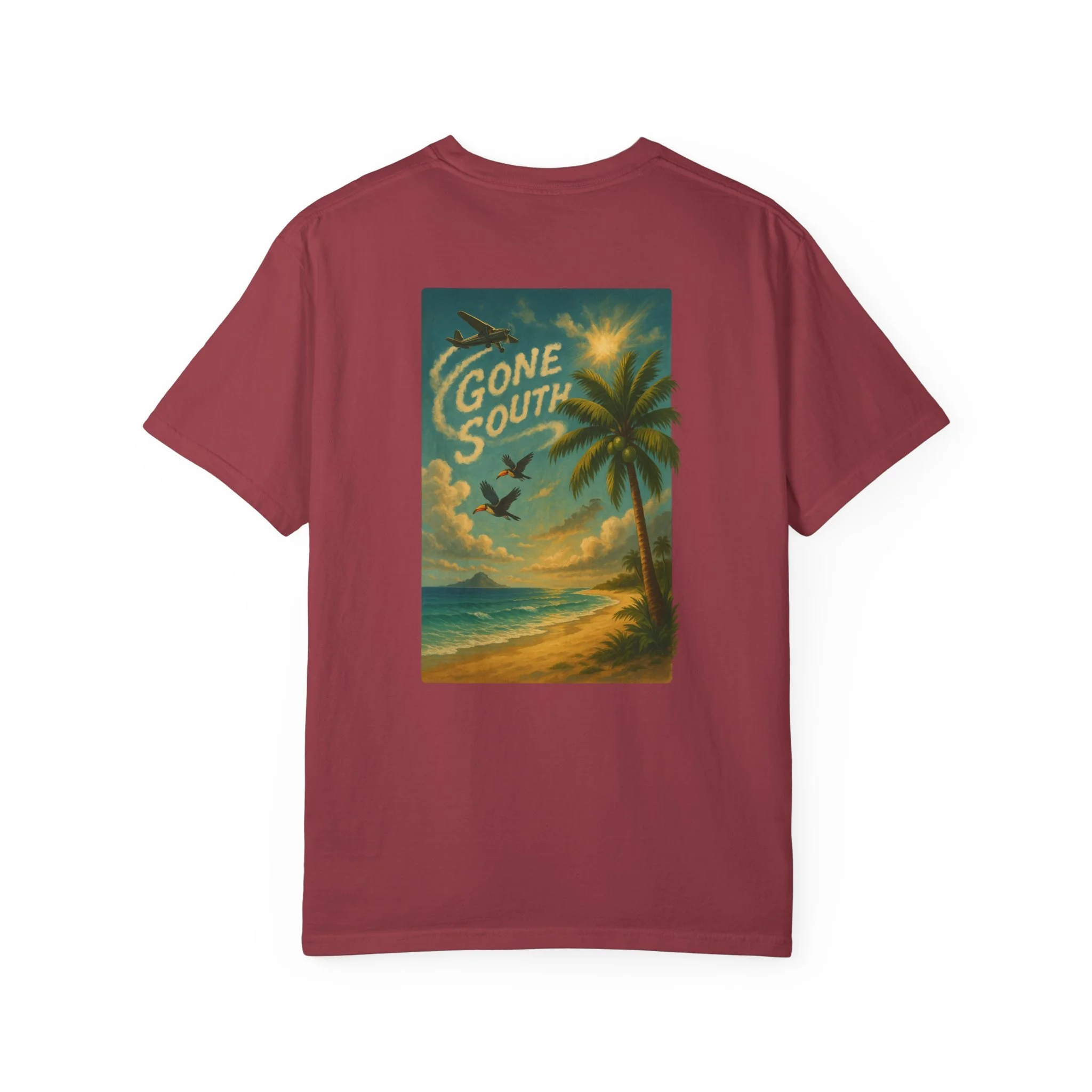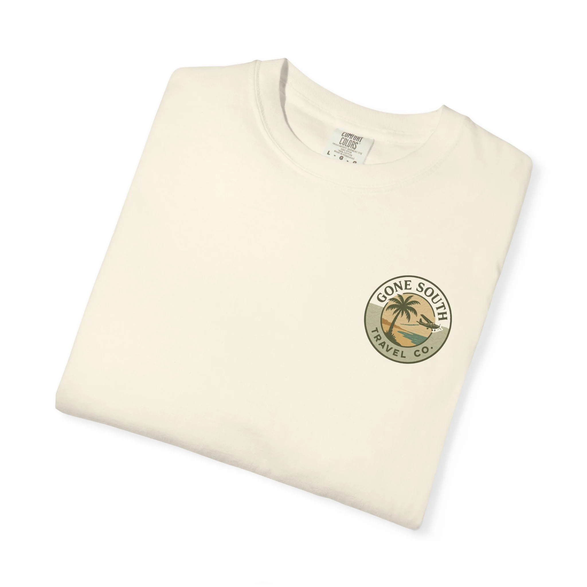 A comfortable and stylish T-shirt featuring a design for gone South travel co. Perfect for those who love to travel and explore new destinations. Ideal for casual wear and to show off your adventurous spirit. Great for travelers, wanderers, and vacation-goers. Relevant for vacations, travel seasons, holidays, and gift-giving occasions.