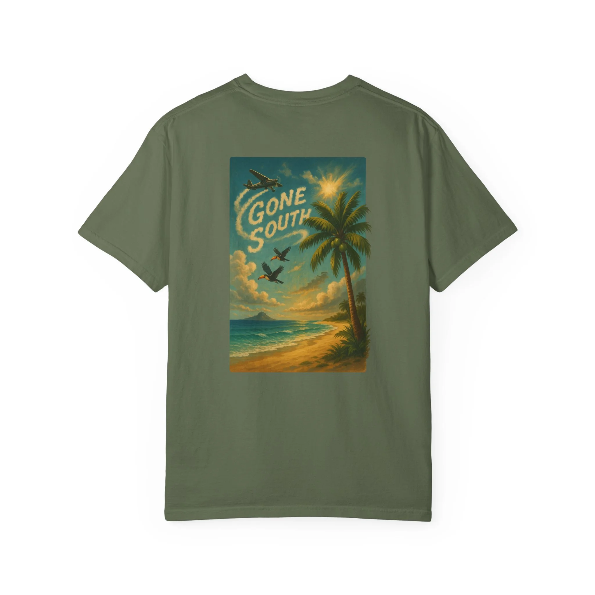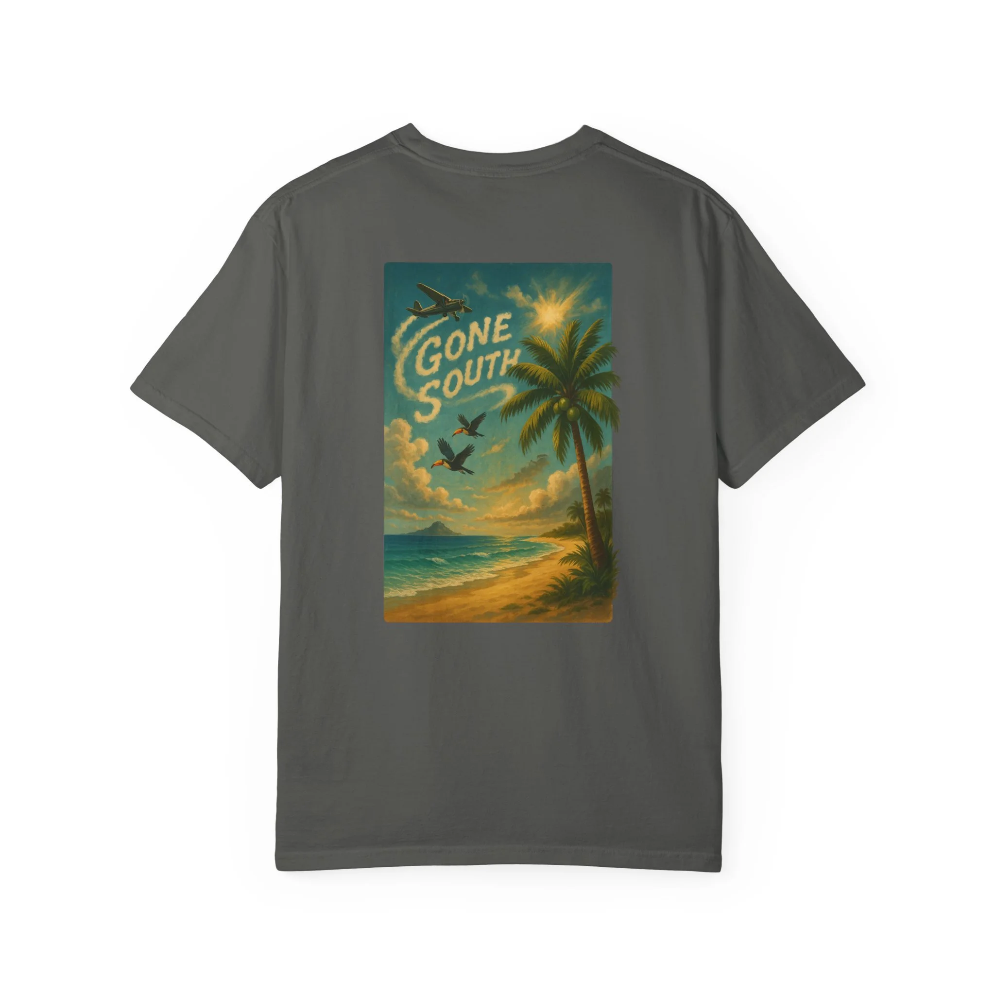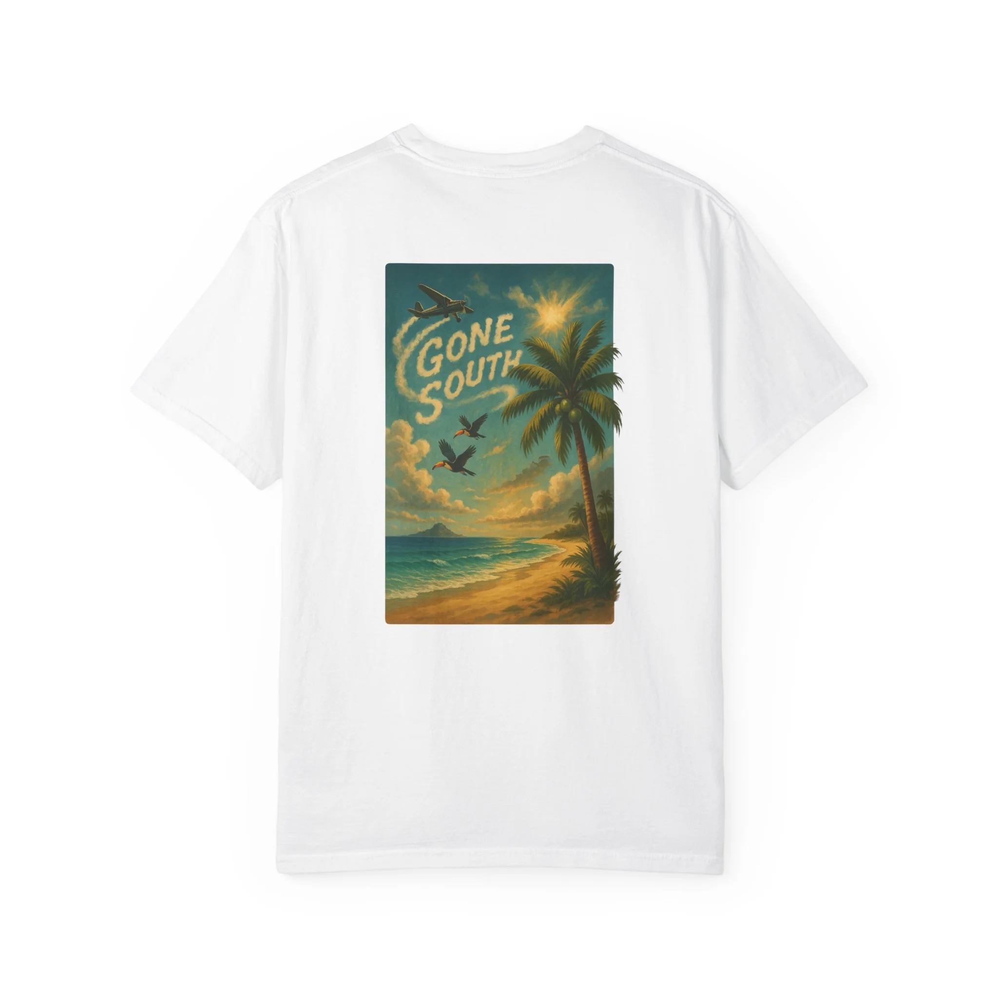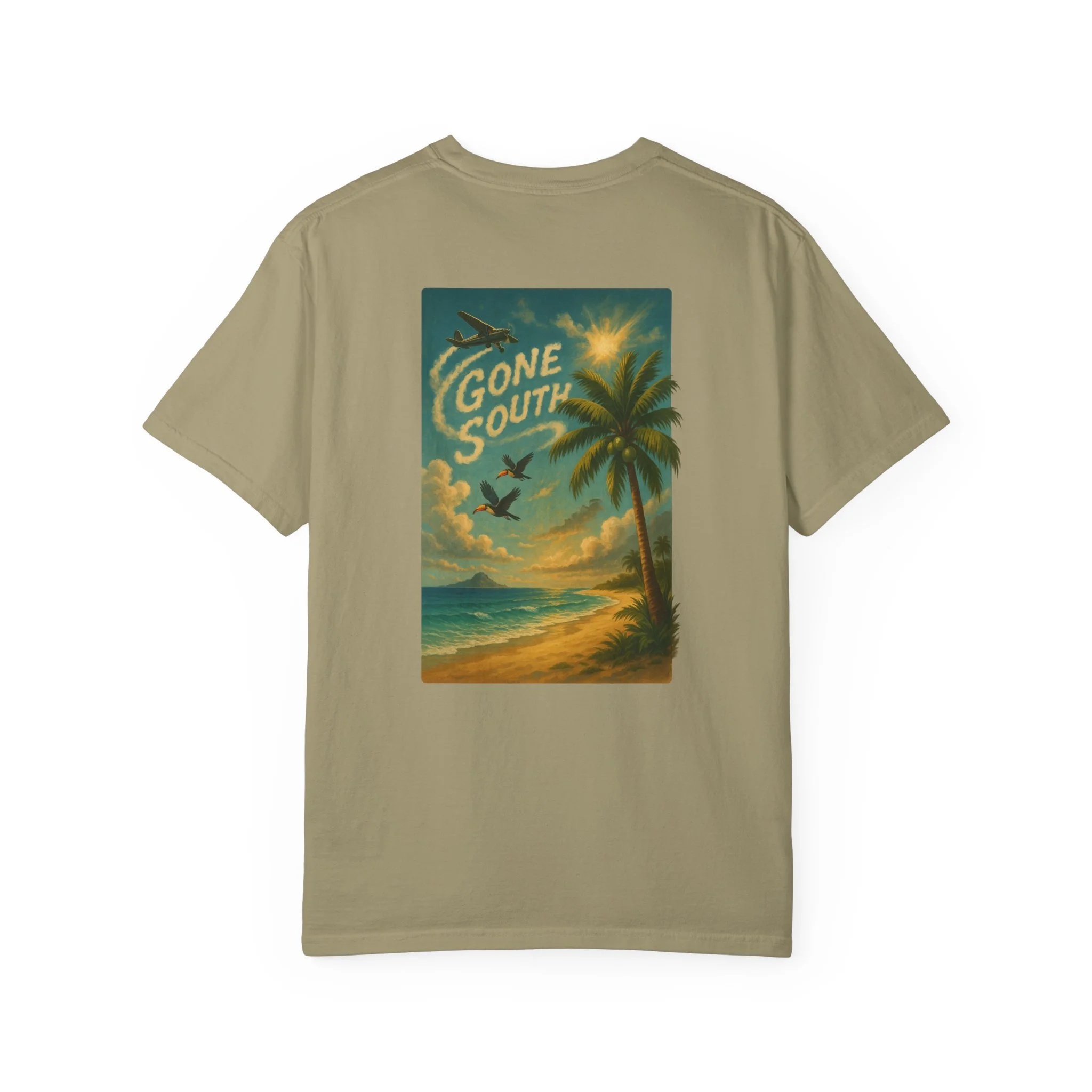A comfortable and stylish T-shirt featuring a design for gone South travel co. Perfect for those who love to travel and explore new destinations. Ideal for casual wear and to show off your adventurous spirit. Great for travelers, wanderers, and vacation-goers. Relevant for vacations, travel seasons, holidays, and gift-giving occasions.