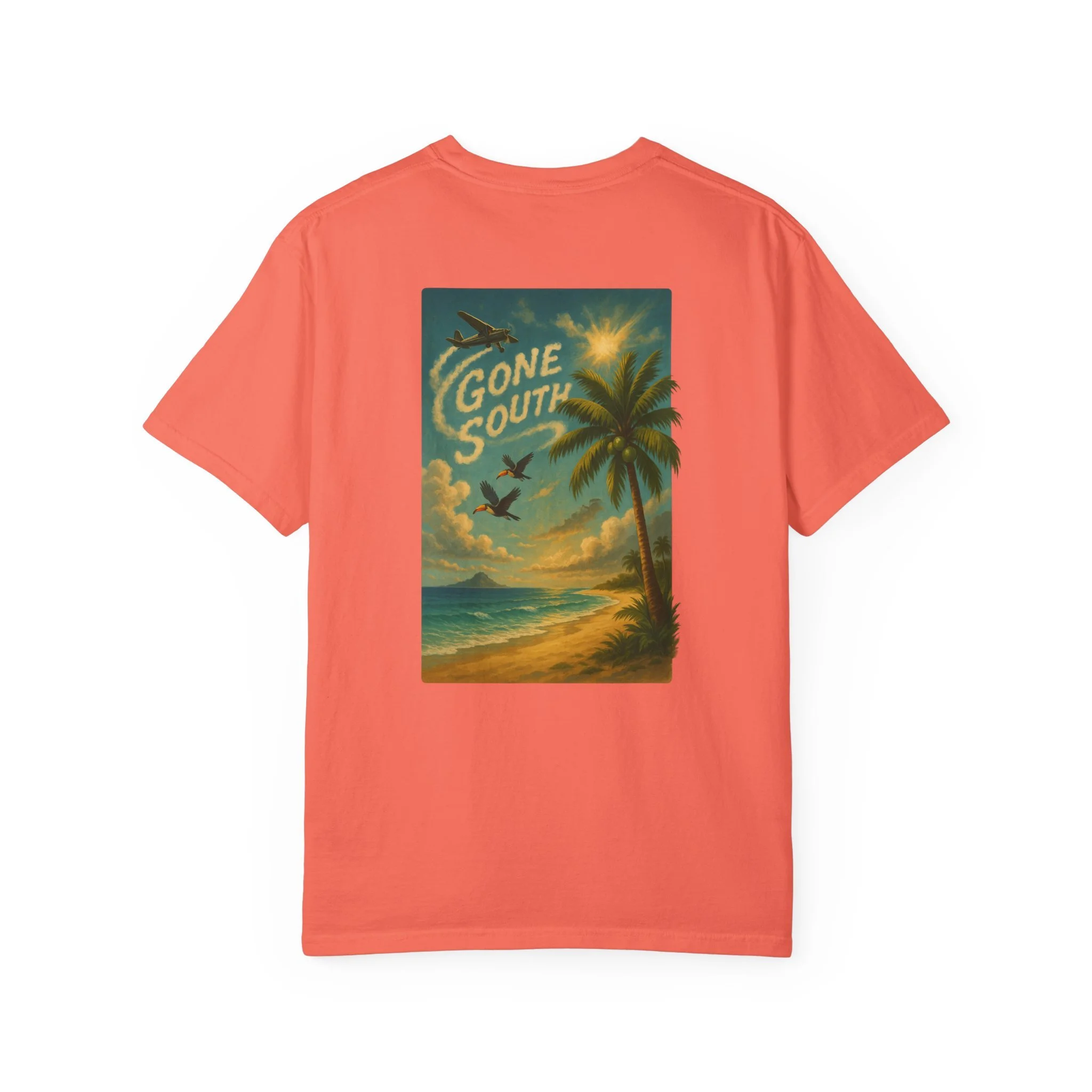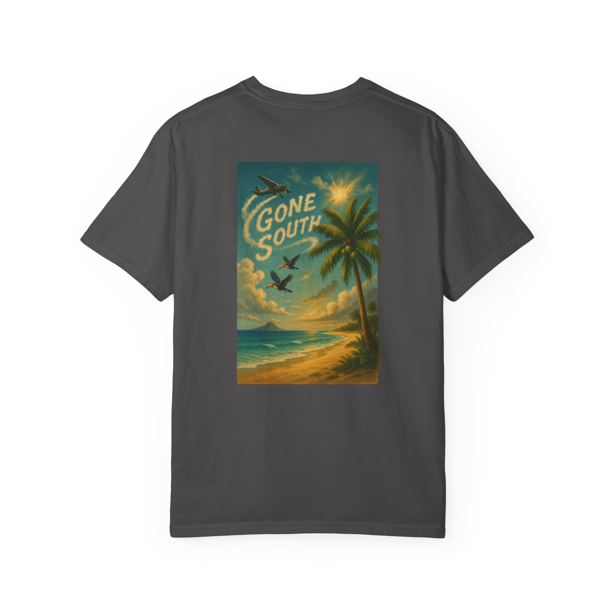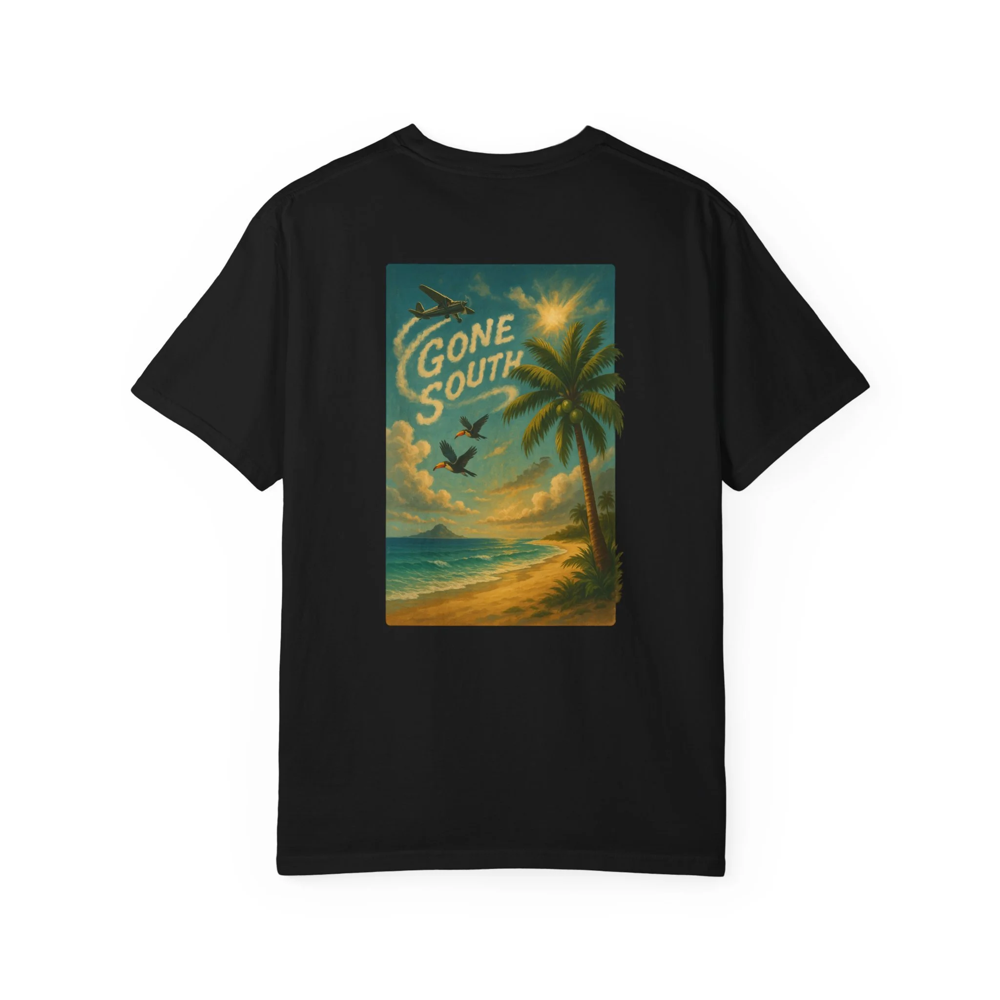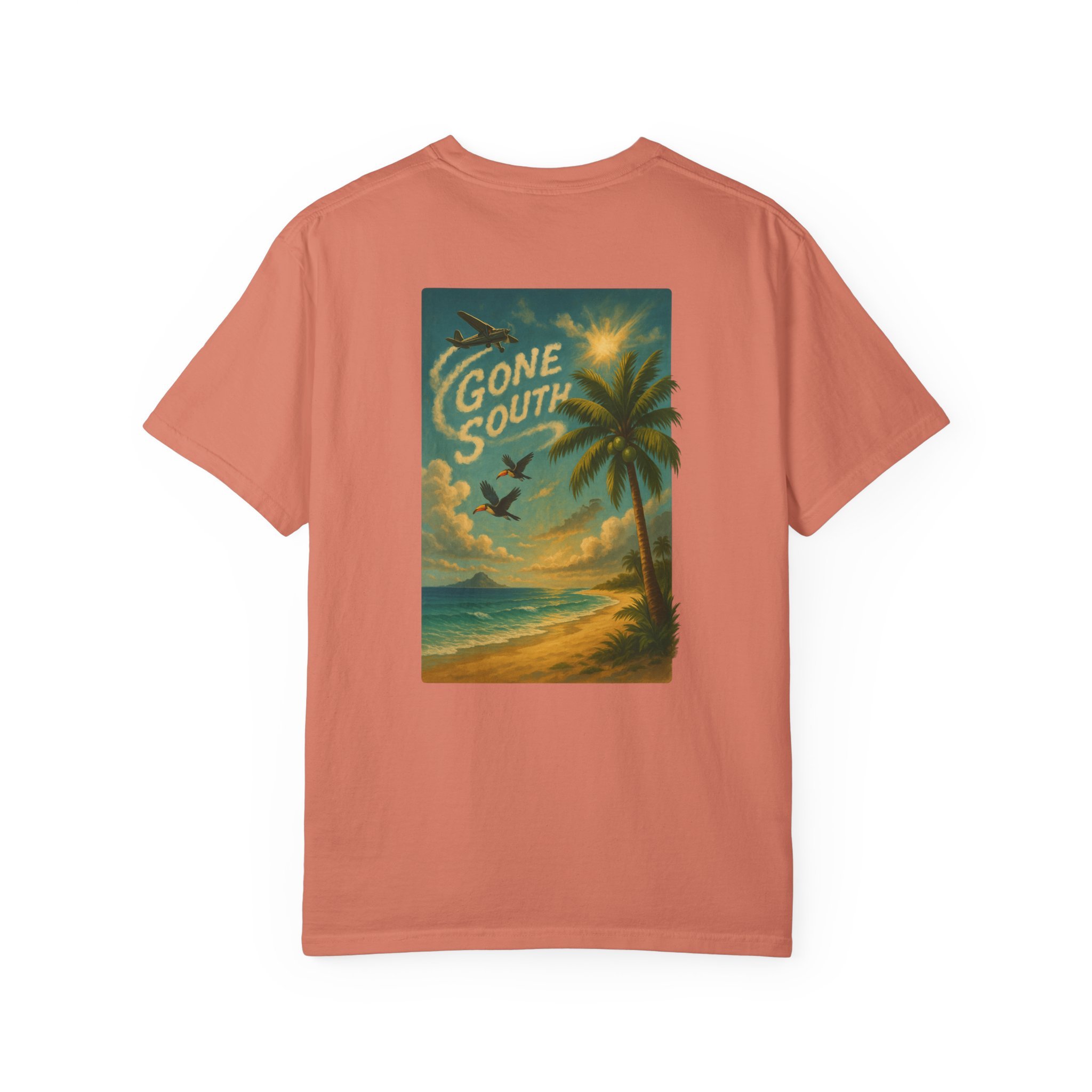 A comfortable and stylish T-shirt featuring a design for gone South travel co. Perfect for those who love to travel and explore new destinations. Ideal for casual wear and to show off your adventurous spirit. Great for travelers, wanderers, and vacation-goers. Relevant for vacations, travel seasons, holidays, and gift-giving occasions.