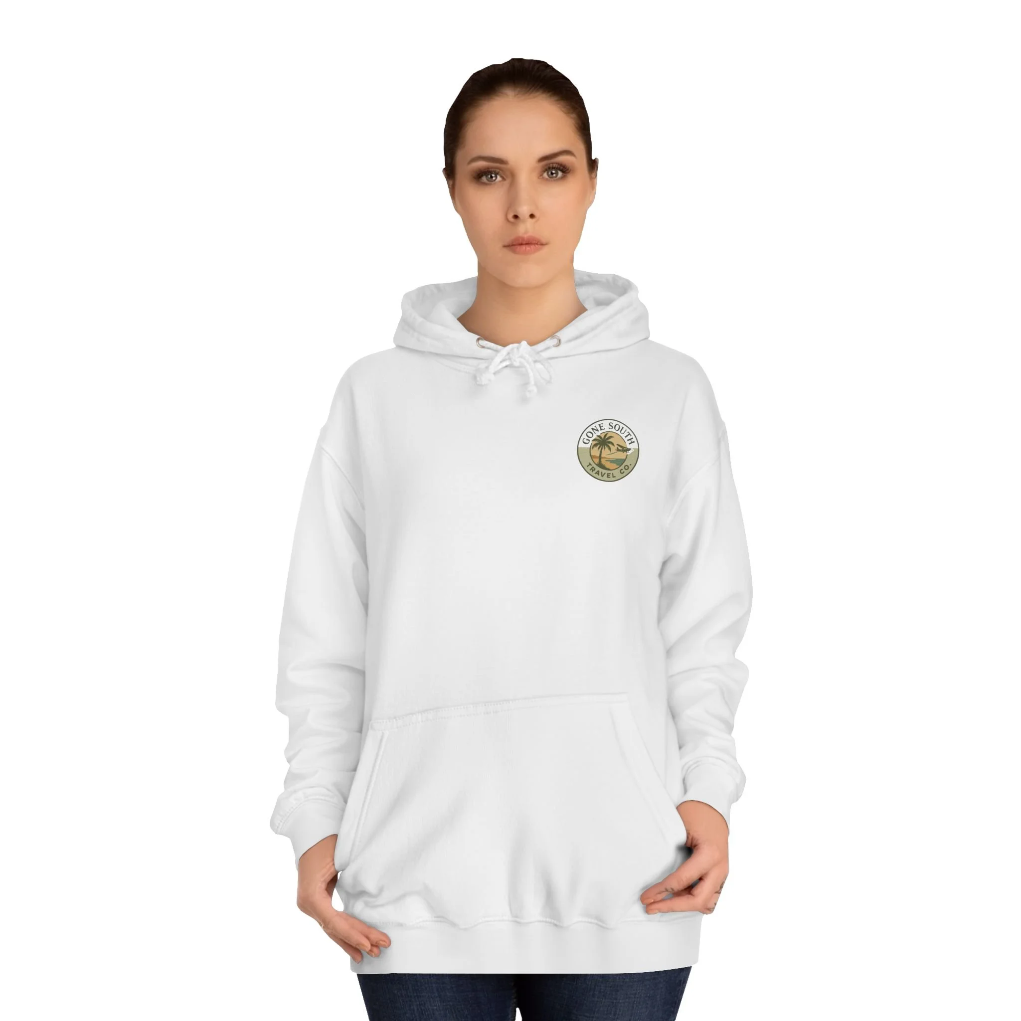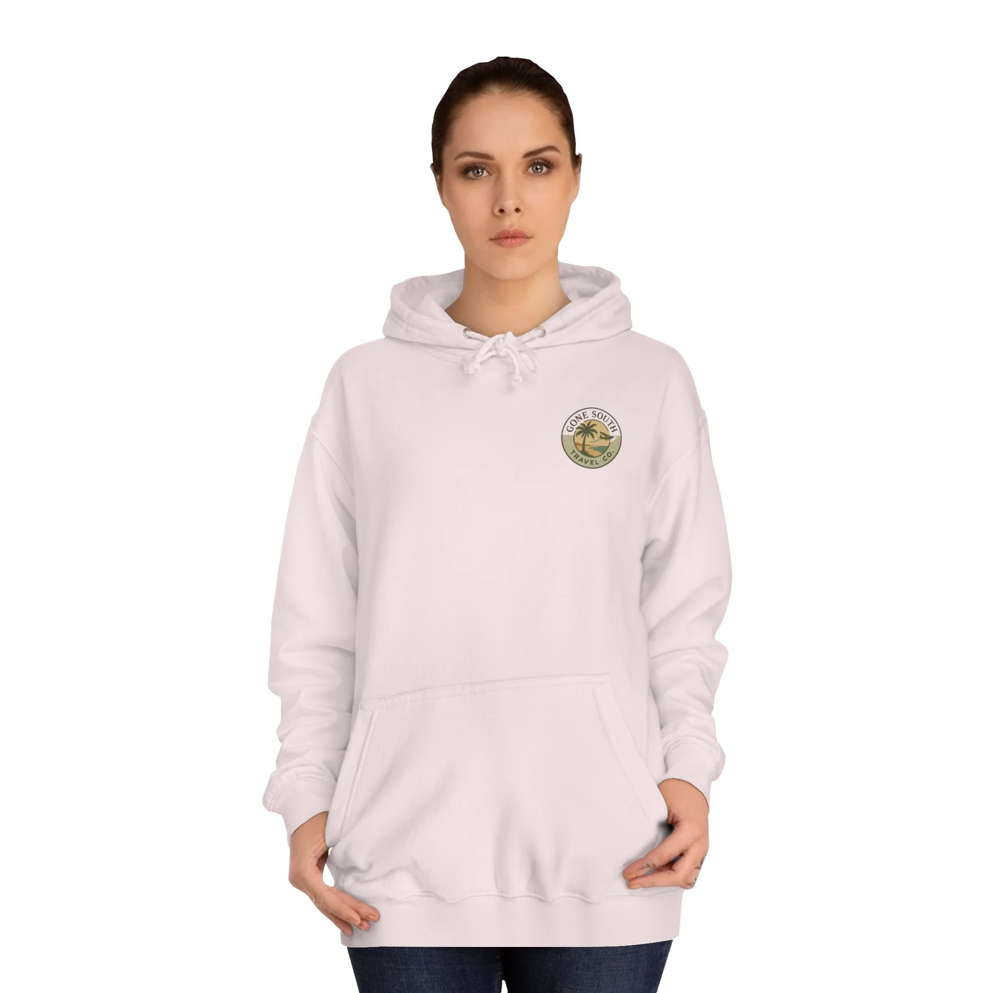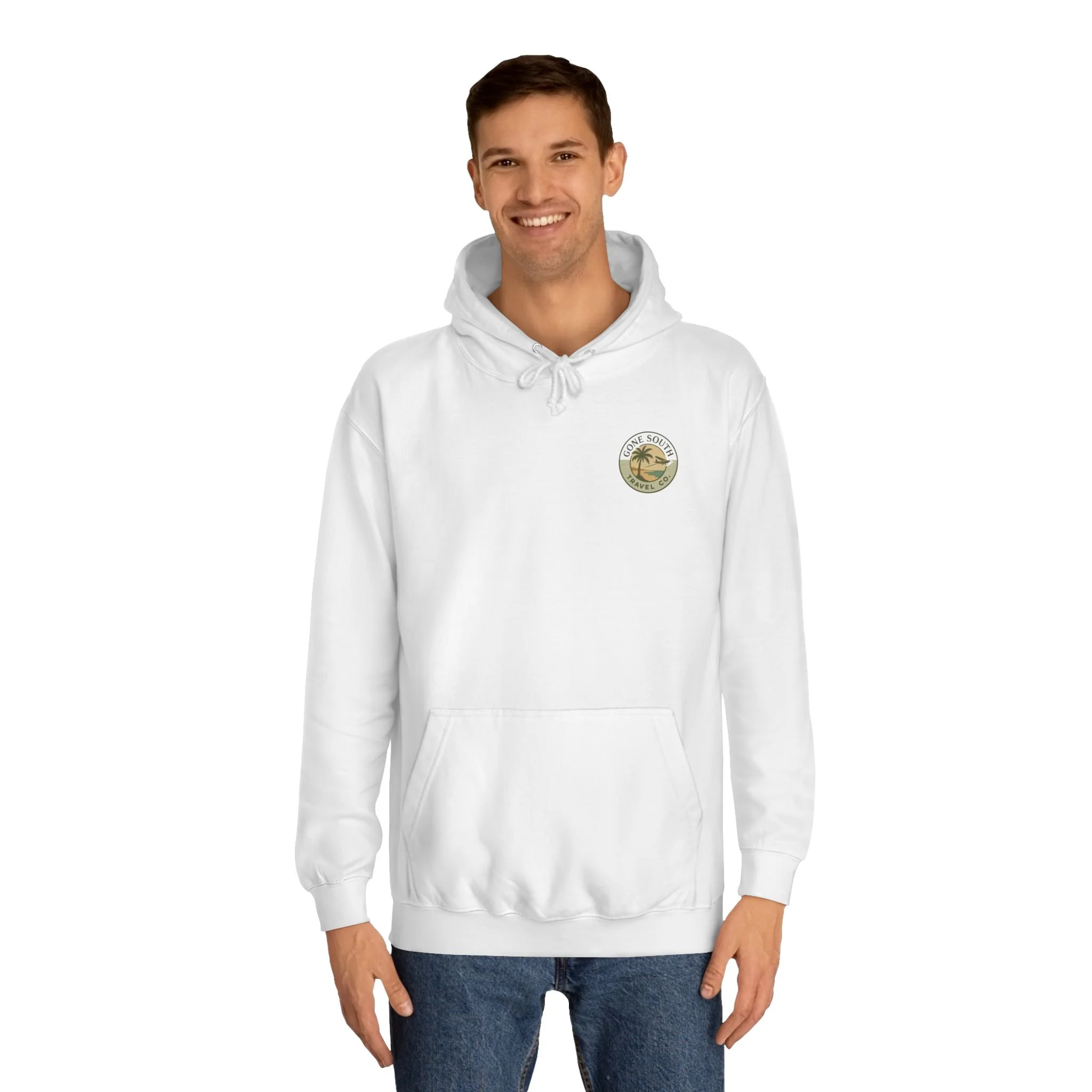 The Gone South Travel Co Hoodie is perfect for those who love to stay cozy and stylish while on the go. This unisex college hoodie offers a loose fit and a spacious kangaroo pouch pocket to keep your hands warm. Made with a medium heavy fabric blend, it's ideal for any age and fits true to size. Whether you're heading to class or exploring a new destination, this hoodie is a must-have for all travel enthusiasts.